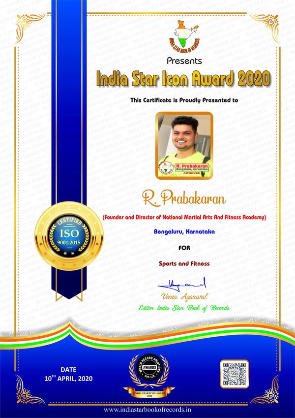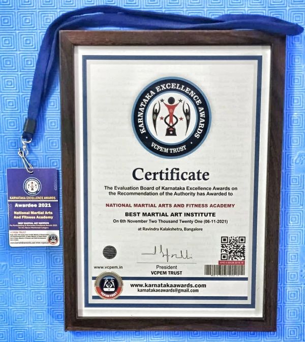 National Martial Arts and Fitness Academy ( NMFA )is a reputed martial arts academy of Bengaluru, Karnataka. Founded by Master Coach, Shihan R. Prabakaran in 2012, NMFA stands for quality services, sports ethics and disciplined practices in the field of sports, fitness and all types of martial arts. NMFA and ISO 9001:2015 certified Academy. Different types of Martial Arts are taught and practised here which are listed below:-